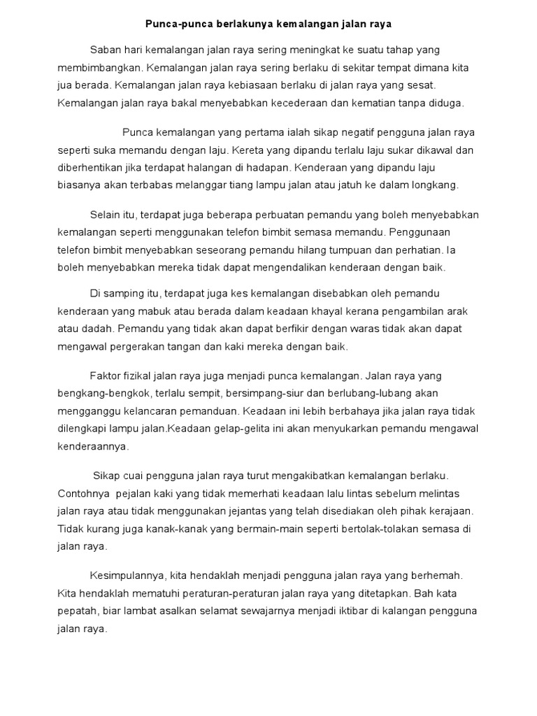 Karangan Punca Berlakunya Kemalangan Pdf